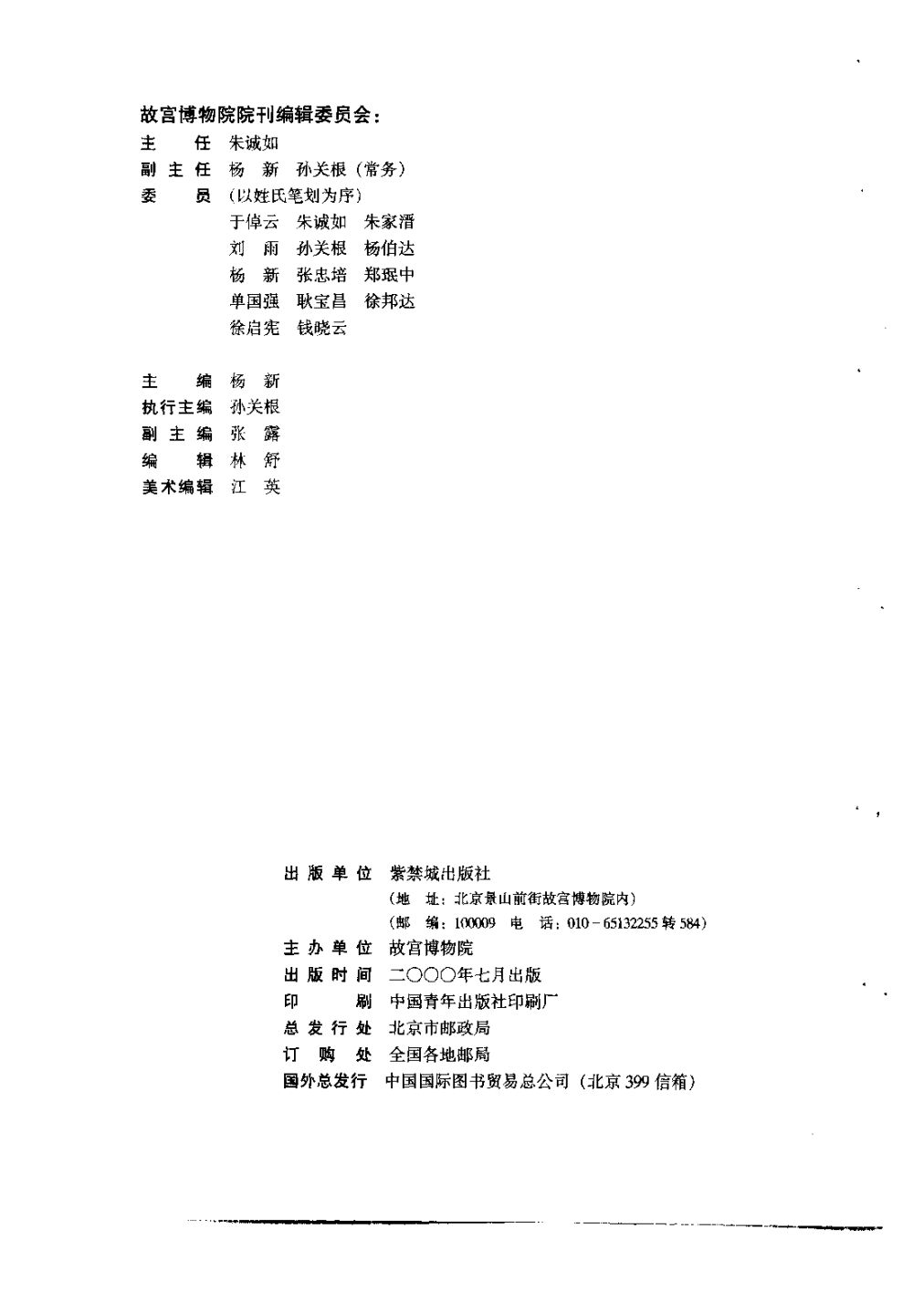 1992年第1至2期,主编为故宫博物院副院长吕济民,副主编为杨新、李毅华。