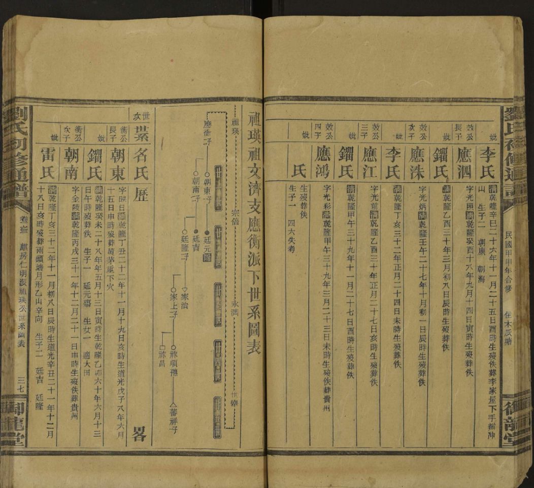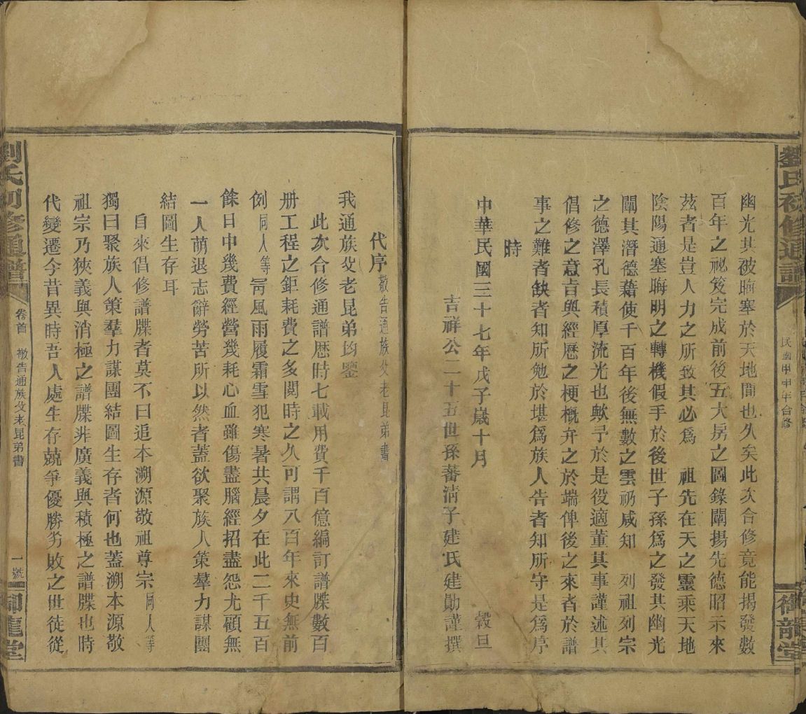│001刘氏四修通谱-卷首1-2_ 总序, 始祖吉祥公派下世系总图表, v 1, 1948.zip 86.25 MB