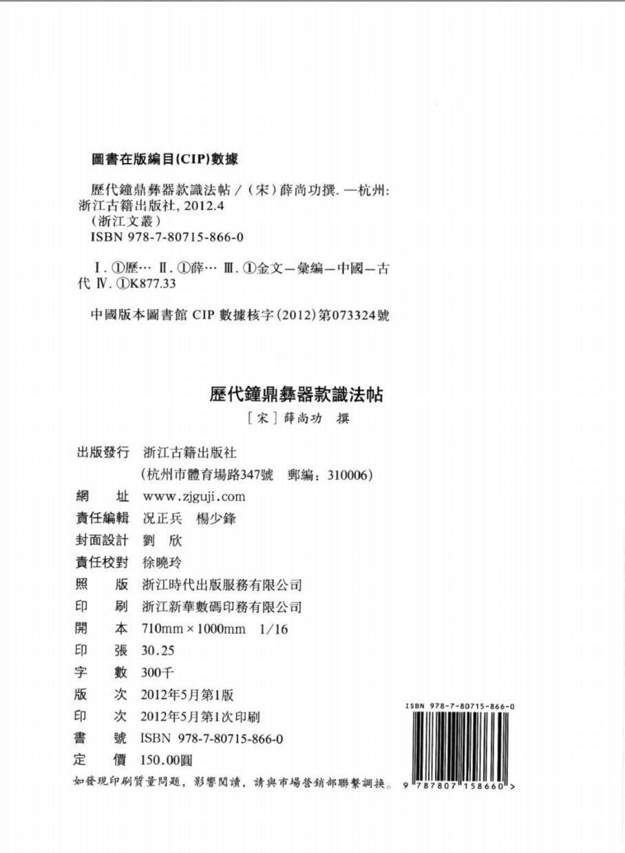 (浙江文丛)历代钟鼎彝器款识法帖(宋)共1册