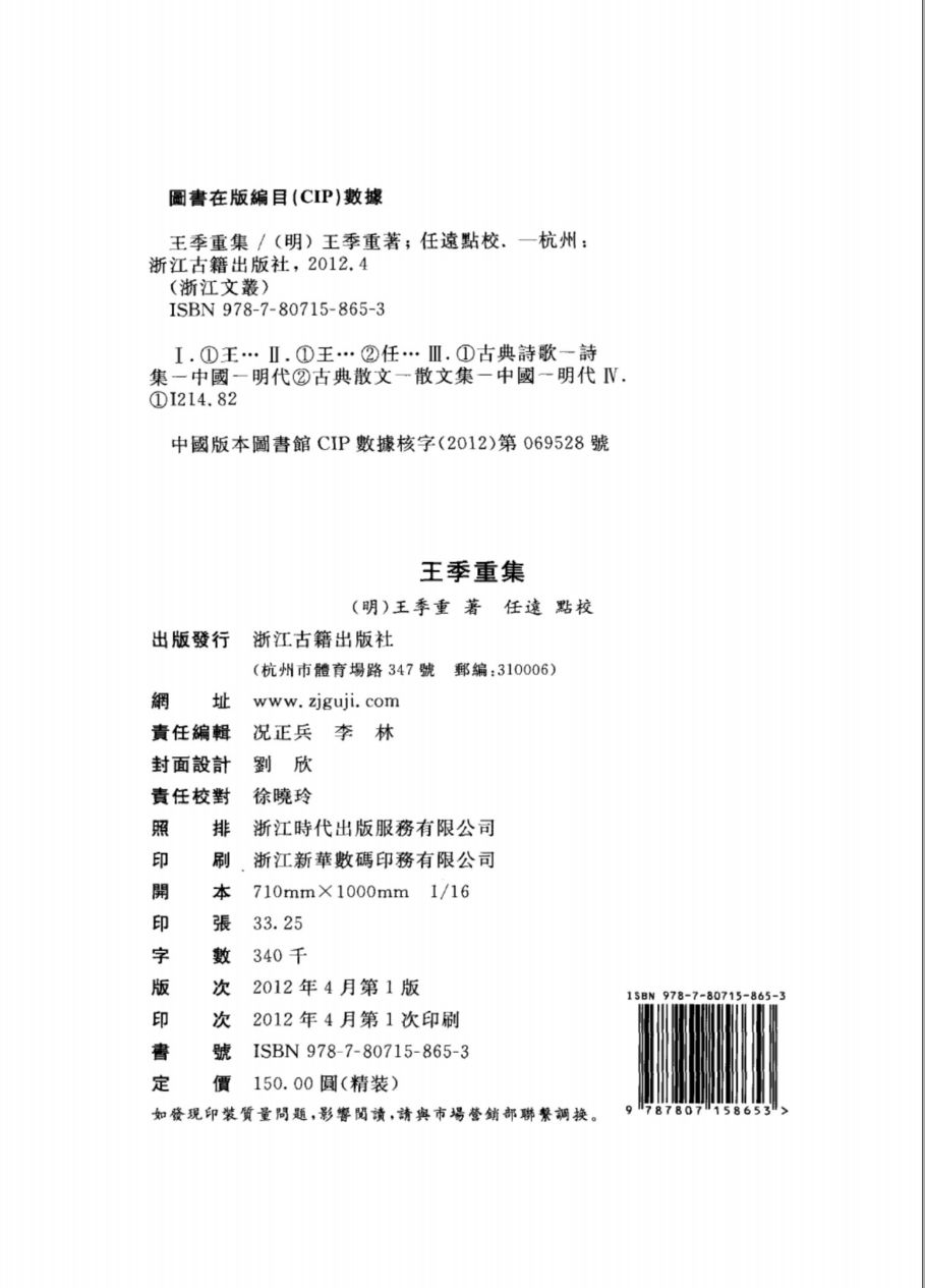 001王季重集(明)王思任撰;任远点校(2012).pdf 221.61 MB