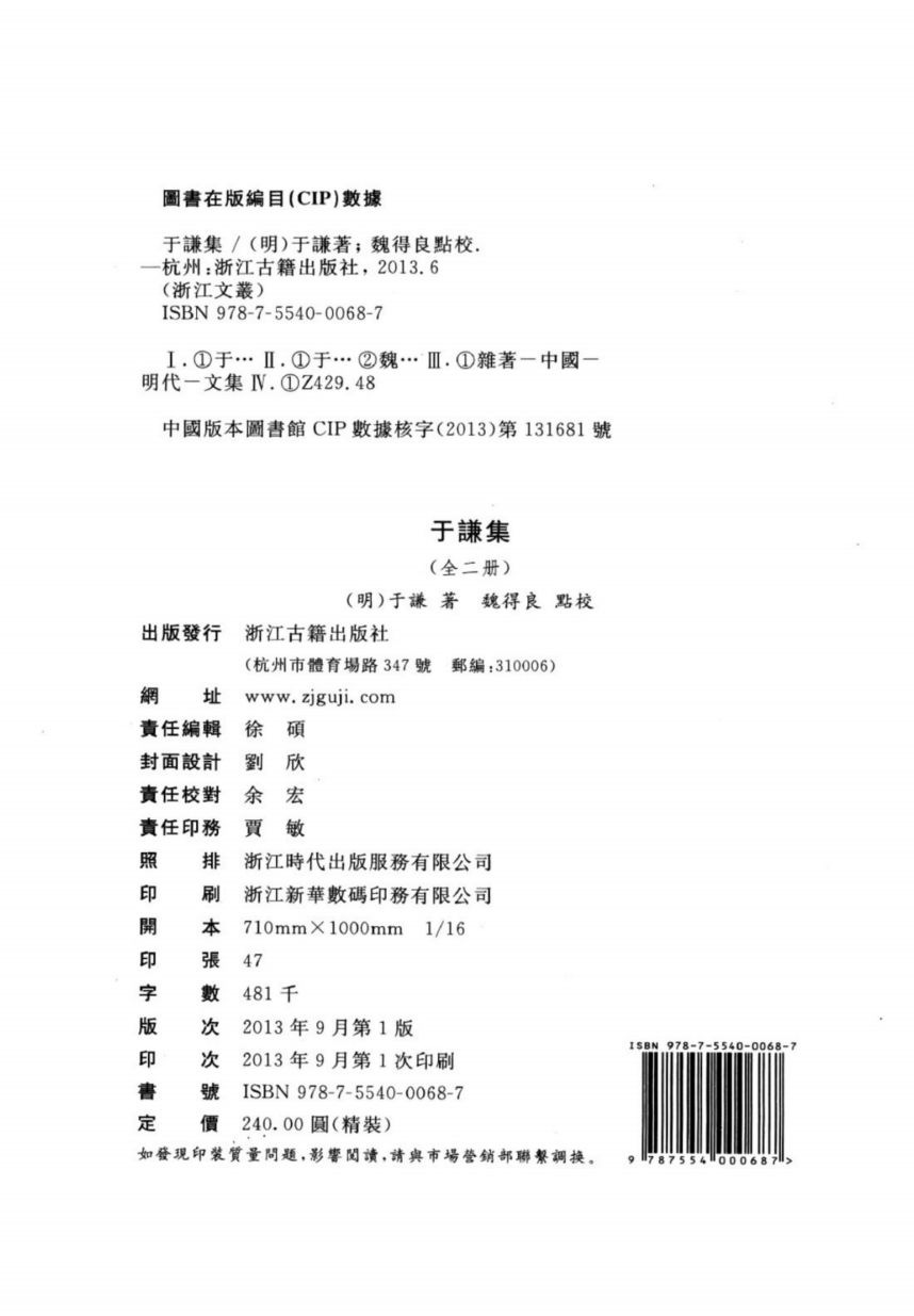001于谦集(明)于谦撰;魏得良点校(2013)上册.pdf 171.04 MB