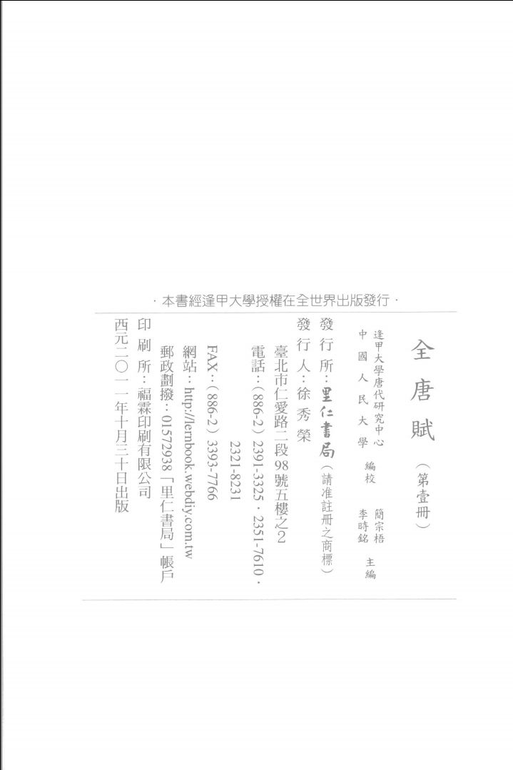 作者:逢甲大学唐代研究中心,中国人民大学编校