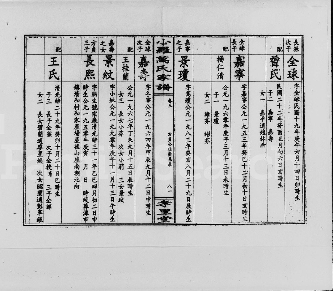 │小罗万氏楚能房谱, 1, 卷首_ 谱序 目录 谱引 凡例 家训 碑传 班序 修谱名目 祠记 墓图等, 1945.zip 40.47 MB