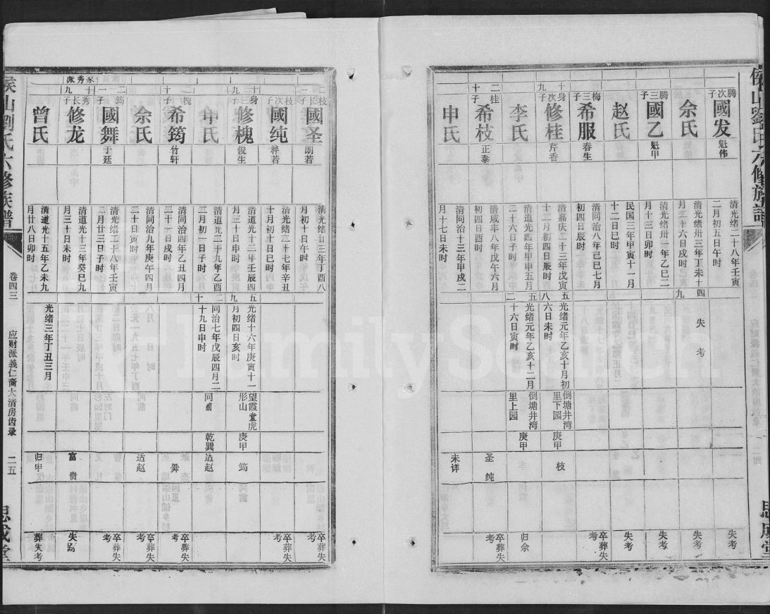 侯山刘氏六修族谱(犹他州藏湖南省图书馆藏本)共46册